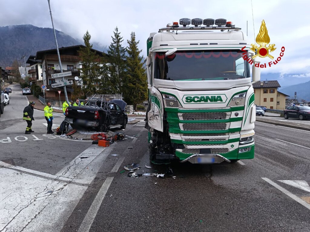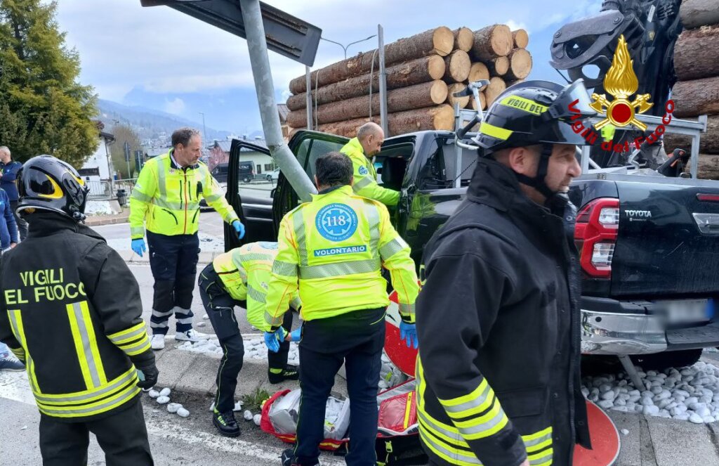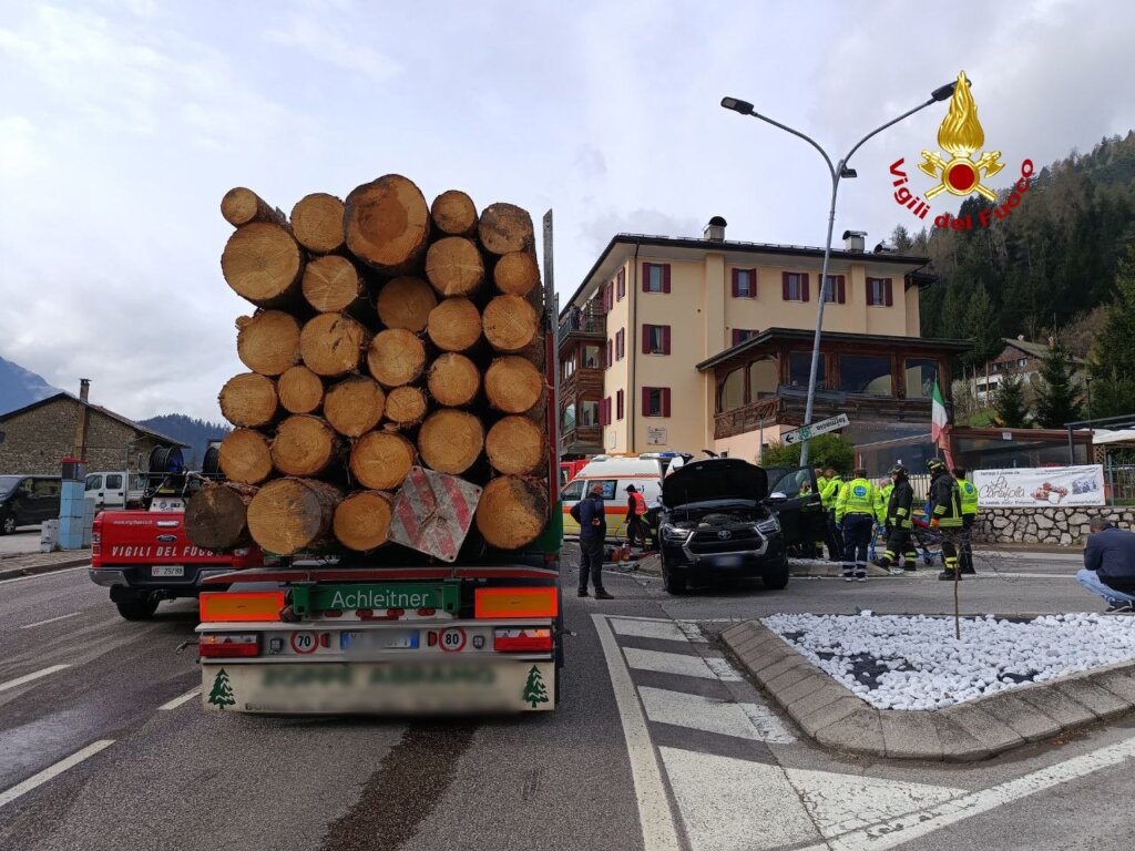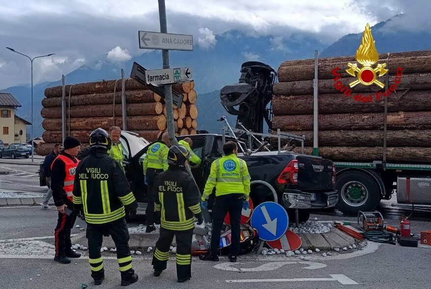 Alle 9:30 di lunedì 14 aprile, i vigili del fuoco sono intervenuti lungo la SS 51 bis a Calalzo di Cadore per un incidente stradale che ha coinvolto un pick-up e un camion con rimorchio carico di tronchi d’albero. Nell’impatto sono rimaste ferite due persone a bordo del veicolo più leggero, una delle quali è stata trasportata in ospedale in codice rosso.