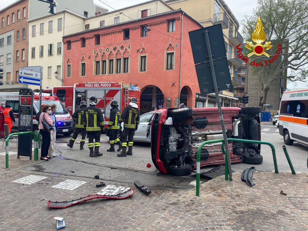 VENETO – Scontro in centro a Padova con auto rovesciata: donna ferita