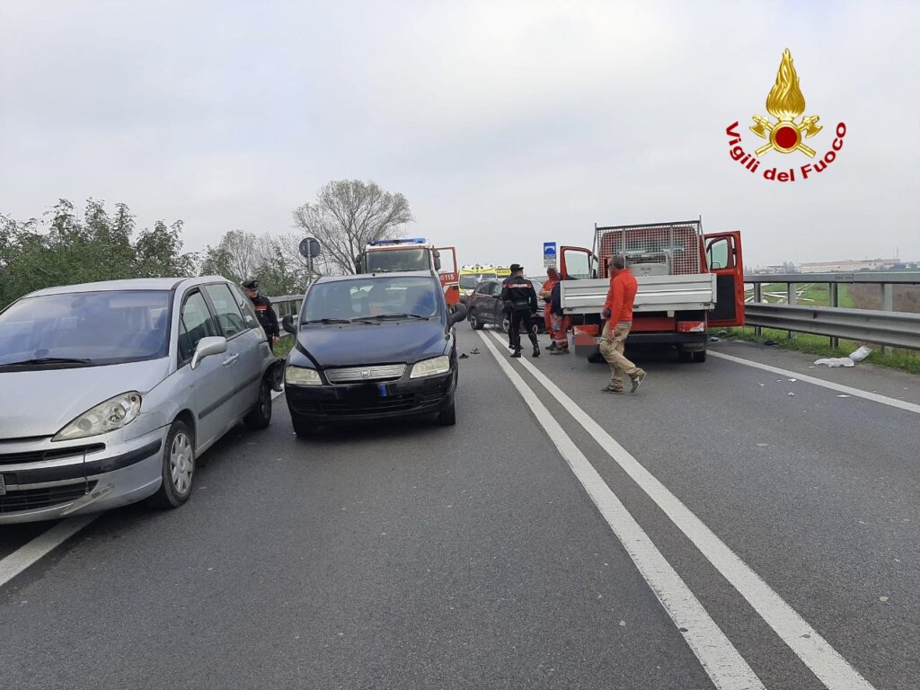 Alle 12:30 di oggi, i vigili del fuoco sono intervenuti lungo la statale Romea, all’incrocio di via Po Vecchio, nei pressi del ponte sul Collettore Padano Polesano a Porto Viro per un incidente semi frontale tra un’auto e un furgone, che ha coinvolto altri tre veicoli: dieci feriti, di cui uno in codice rosso.
