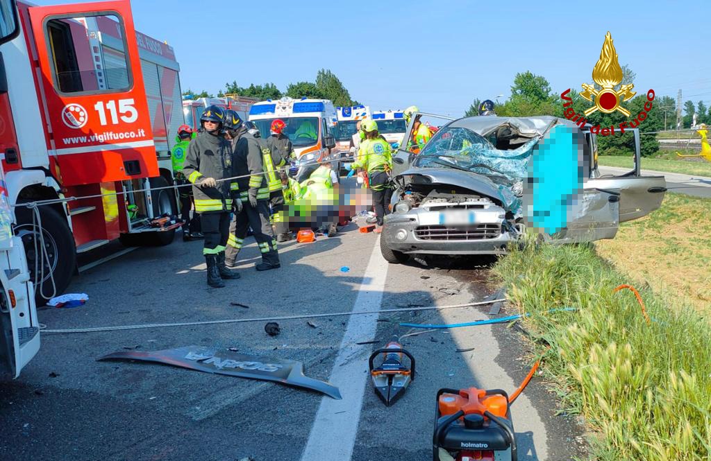 Da poco dopo le 16:00, i vigili del fuoco stanno operando lungo Via Postumia a San Pietro in Gù, Comune ai confini fra Padova e Vicenza, per un incidente frontale tra un’auto e un mezzo pesante: 2 persone decedute e 4 feriti in gravi condizioni, tutte di origine straniera. L’incidente è avvenuto all’altezza del mangimificio Veronesi. I pompieri arrivati da Cittadella e Bassano del Grappa, hanno messo in sicurezza i mezzi ed estratto i feriti dall’auto. Purtroppo nell’impatto due persone sono decedute sul colpo, come accertato dai sanitari del SUEM presenti sul posto con 4 autoambulanze e 2 elisoccorso. Gli altri tre feriti sono in fase di stabilizzazione da parte dei sanitari. Il traffico è bloccato nelle due direzioni. Sul posto le forze dell’ordine per i rilievi del sinistro e la deviazione del traffico.
