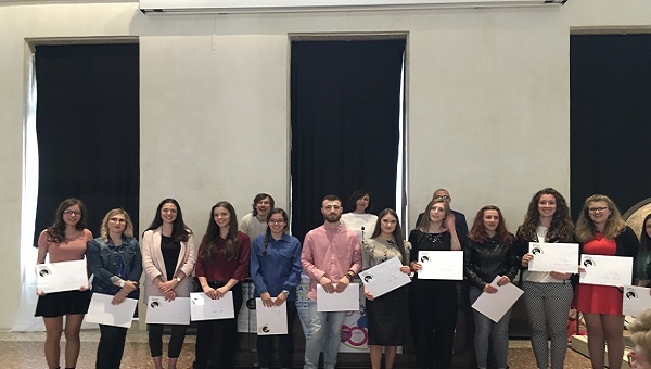 La cerimonia di premiazione si è svolta sabato pomeriggio scorso nella storica cornice di Palazzo Chiericati, dove Stefano Arduini, vicepresidente FUSP, Salvatore Mele, direttore didattico SSML Vicenza, Giuliana Schiavi, presidente SSML Vicenza, e il critico letterario Marco Cavalli hanno consegnato ai vincitori i premi per ciascuna lingua: al 1° classificato 400 euro, al 2° 250 euro e al 3° 100 euro.