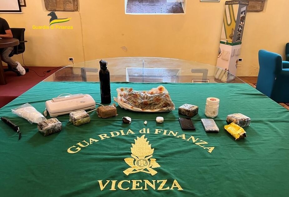 Nei giorni scorsi la Finanza di Vicenza ha arrestato di un cittadino albanese di 40 anni, domiciliato a Vicenza, trovato in possesso di quasi 3 kg. di stupefacenti: oltre 2,3 kg, hashish, mezzo chilo di marijuana e 2 grammi di cocaina.
