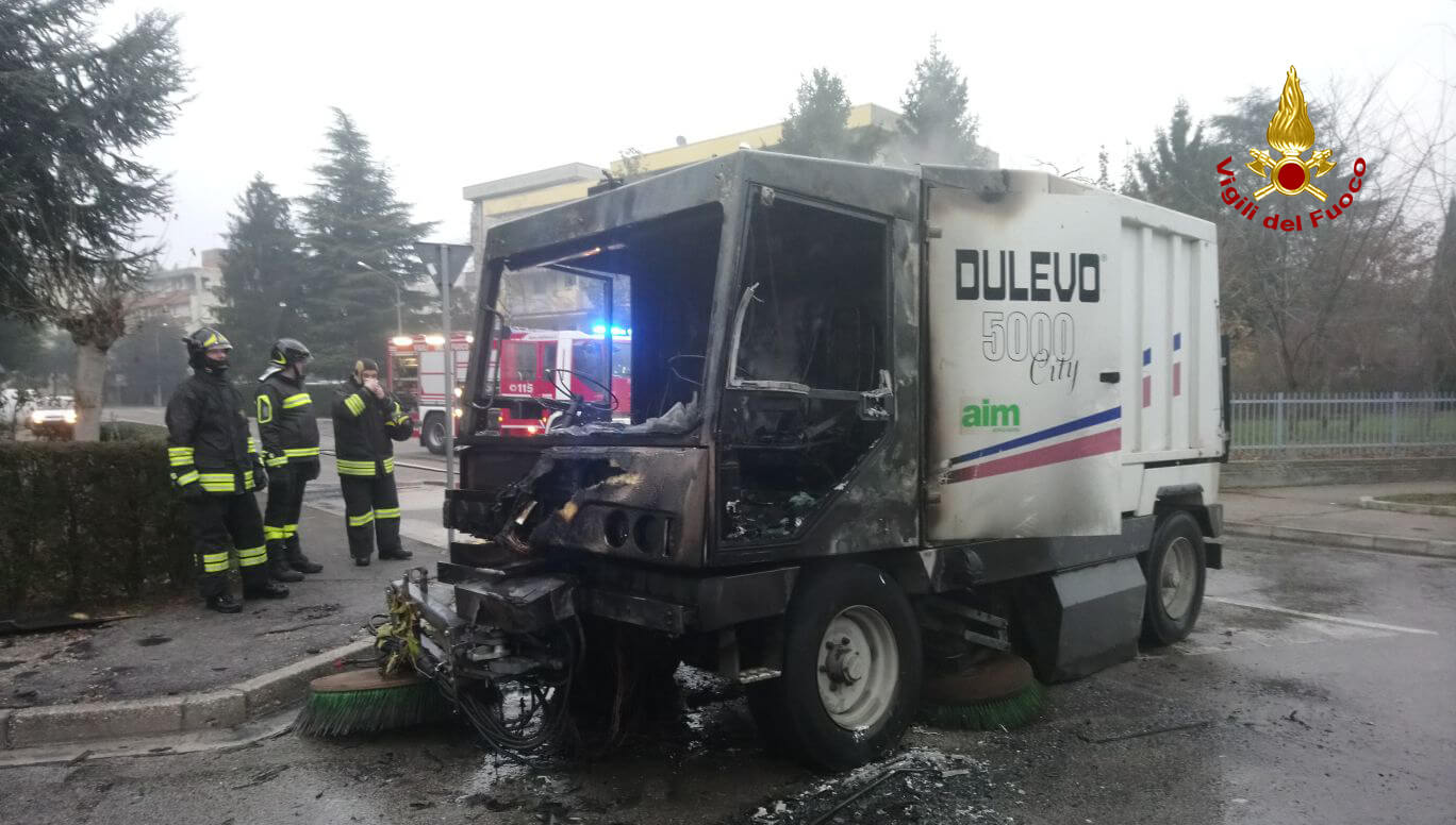 Alle ore 7.15 i vigili del fuoco sono intervenuti in via Turati nel quartiere del Tormeno a Vicenza per l’incendio di un camion spazzatrice stradale. L’autista sceso dal mezzo per controllare cosa non andava, si è accorto delle fiamme divampate nel cassone. I pompieri intervenuti con due squadre, hanno spento l’incendio che ha distrutto la cabina del camionioncino e parte del cassone. Le operazioni di completo spegnimento e messa in sicurezza del mezzo e del luogo sono durate circa un’ora e mezza.