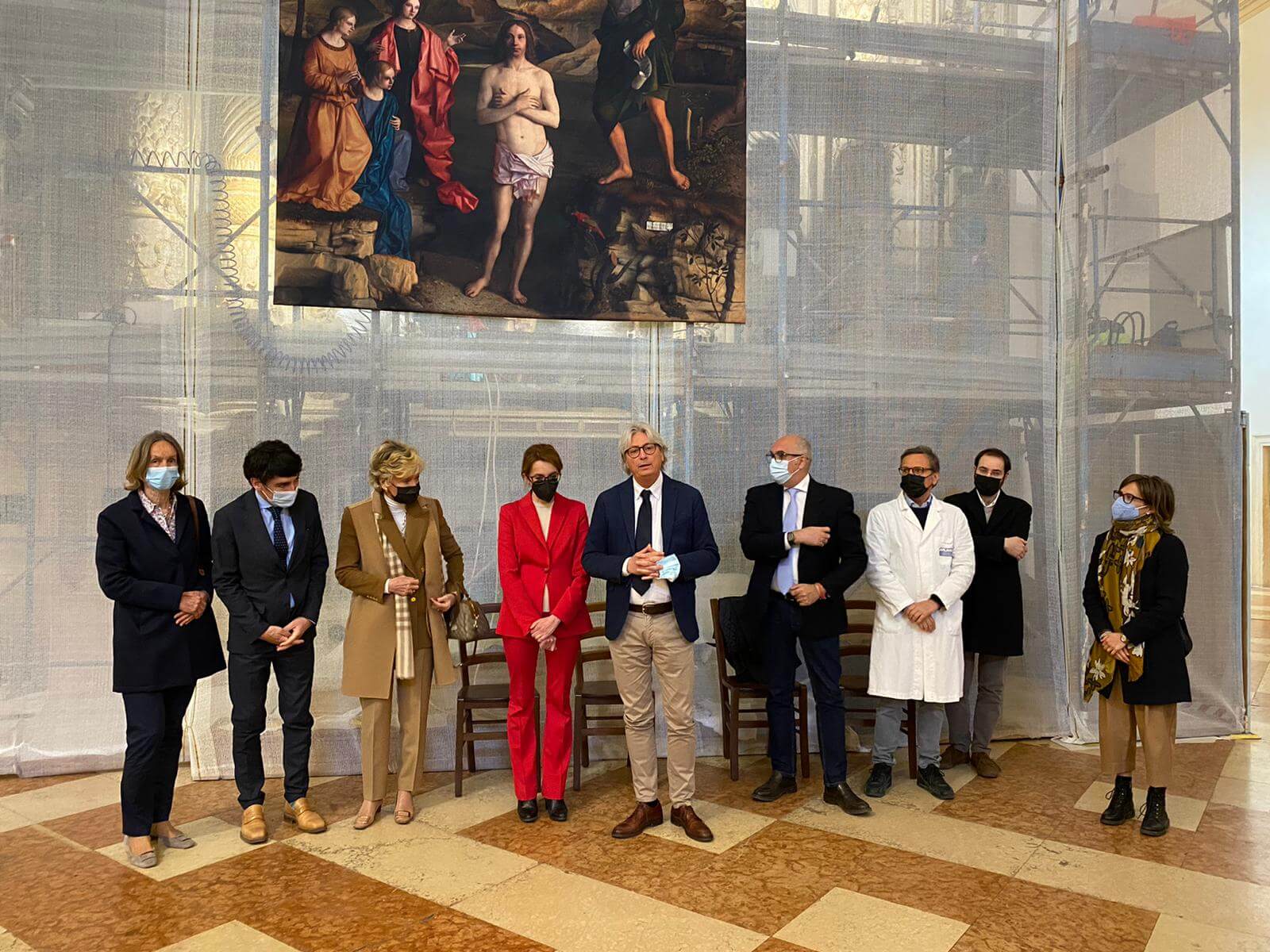 L’ultimo restauro completo del dipinto su tavola di Giovani Bellini risale al 2010. Questo intervento manutentivo tenderà a ristabilire le proprietà di supporto strutturali del dipinto con particolare attenzione alle parti lese, ricostituendo successivamente l’aspetto estetico. In accordo con la Soprintendenza si è ritenuto opportuno intervenire filologicamente e tecnicamente con metodologie e materiali analoghi all’ultimo restauro eseguito.