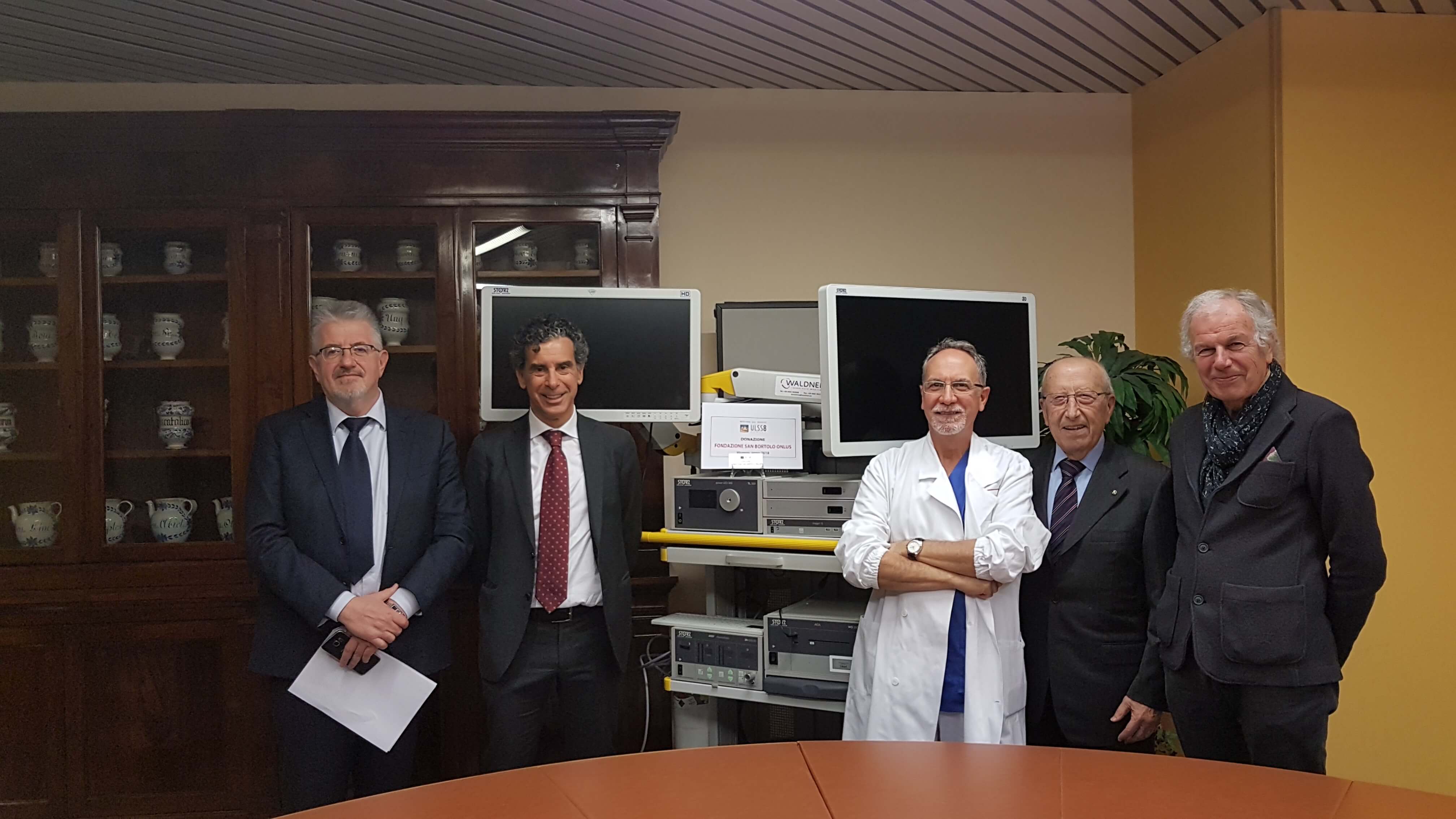 Si arricchisce di una nuova strumentazione all’avanguardia la dotazione tecnica dell’Unità Operativa Complessa di Urologia del S. Bortolo: si tratta di una nuova colonna laparoscopica con sistema di visione tridimensionale, frutto di una donazione del valore di oltre 170 mila euro da parte della Fondazione San Bortolo. Come suggerisce il nome stesso, la colonna incorpora tutti gli strumenti necessari ad eseguire un intervento in laparoscopia, tecnica mini-invasiva che nel caso dell’Urologia consente di eseguire un’operazione senza praticare un taglio ampio e profondo dell’addome, ma solo delle piccole incisioni (da 5-6 a meno di 20 mm) attraverso le quali si inseriscono dei tubi rigidi che permettono di introdurre in addome una serie di strumenti chirurgici miniaturizzati, del diametro di 5-10 mm e lunghi mediamente 35-40 cm. Tra questi vi è anche una mini-telecamera che permette di avere una visione del campo operatorio interno che viene proiettata su di un monitor (televisore). Proprio il sistema di visione adottato costituisce il grande valore aggiunto della nuova apparecchiatura, in quanto consente una visione tridimensionale (3D): «Usualmente l’immagine visualizzata a video è bidimensionale (2D) – spiega il dott. Paolo Ferrarese, direttore dell’Urologia dell’ospedale vicentino– e così è come operare con un occhio solo: il chirurgo vede solo la distanza che c’è tra vari elementi (arterie, vene, etc.) posti sullo stesso piano, mentre non vede la distanza che c’è tra elementi posti su piani differenti, uno più vicino e l’altro più lontano, egli la deve, per così dire, “ricostruire” attraverso un’ “elaborazione mentale”, operazione non facile considerando che si lavora su superfici e oggetti a volte estremamente piccoli e delicati; con la visione 3D invece tutto è molto più immediato e realistico e l’azione del chirurgo risulta più veloce e sicura». Vantaggi davvero significativi, dunque, anche considerando che oggi, presso l’Urologia del San Bortolo, l’80% degli interventi che prima venivano eseguiti “a cielo aperto” (cioè con un taglio sull’addome) oggi avvengono in laparoscopia, con tanti vantaggi per il paziente: minore invasività del gesto chirurgico, migliore cura dei dettagli e maggior precisione, minor dolore postoperatorio e minor uso di farmaci antidolorifici, minore necessità di trasfusioni di sangue, tempi di ospedalizzazione e di recupero fisico decisamente più brevi. Tanto più che gli ambiti di applicazione della chirurgia laparoscopica sono davvero tanti, anche in Urologia: oggi con questa tecnica vengono eseguiti interventi per patologia tumorale del rene, del surrene, dell’uretere, della vescica, della prostata, dei linfonodi retroperitoneali, ma anche la chirurgia ricostruttiva delle vie urinarie superiori e quella demolitiva per patologia non tumorale (si pensi, ad esempio, all’asportazione di un rene dilatato ed atrofico, e per questo suscettibile di infezione a volte grave). «Questa nuova attrezzatura – sottolinea il dott. Ferrarese – con la sua “visione 3D” (tridimensionale) verrà impiegata in sostituzione di quella a “visione 2D” (bidimensionale), in una grande varietà di interventi di grande delicatezza e ci consentirà di garantire ai nostri pazienti standards di efficacia e sicurezza ancora più elevati. Per questa ragione, a nome di tutto il reparto e dei pazienti, voglio ringraziare la Fondazione S. Bortolo e quanti hanno contribuito a questa importante donazione». Proprio alla possibilità di portare a termine altri importanti progetti come questo è rivolto l’appello del Commendator Gian Carlo Ferretto, presidente della Fondazione S. Bortolo: «Come tutti sanno la nostra Fondazione opera esclusivamente grazie alle donazioni che riceviamo e ai lasciti testamentari che ci auguriamo possano ulteriormente essere presi in considerazione da generosi benefattori: dunque risultati come questo sono possibili solo grazie alla generosità dei nostri concittadini. Un aiuto importante ci viene in particolare dalle tantissime donazioni attraverso la destinazione del 5×1.000 da effettuarsi in occasione della denuncia dei redditi: questa è una notevole modalità di sostegno, anche perché è a costo zero per il contribuente, e naturalmente auspichiamo che anche quest’anno si confermi la grande sensibilità che tutta la nostra comunità dimostra nei confronti dell’ospedale, che è davvero una risorsa di tutti noi».
