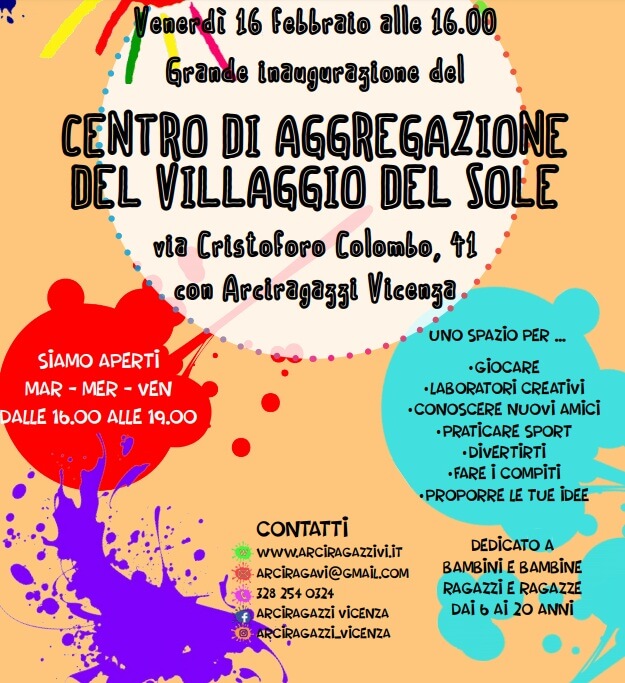 Arciragazzi Vicenza è lieta di invitarVi all’inaugurazione del centro di aggregazione del Villaggio