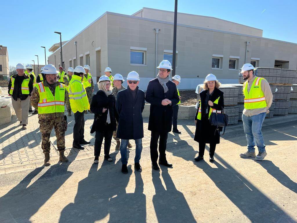 Il sindaco Francesco Rucco e il consigliere comunale Roberto Cattaneo, accolti dal comandante della Setaf generale di divisione Todd R. Wasmund, dal comandante della caserma Ederle Matt Gomlak e dal comandante italiano delle infrastrutture Usa Setaf Michele Amendolagine, lunedì 13 febbraio si sono recati in visita alla nuova scuola superiore in fase di realizzazione all’interno del Villaggio della Pace abitato dai militari e dalle famiglie statunitensi assegnati alle caserme Ederle e Del Din a Vicenza.