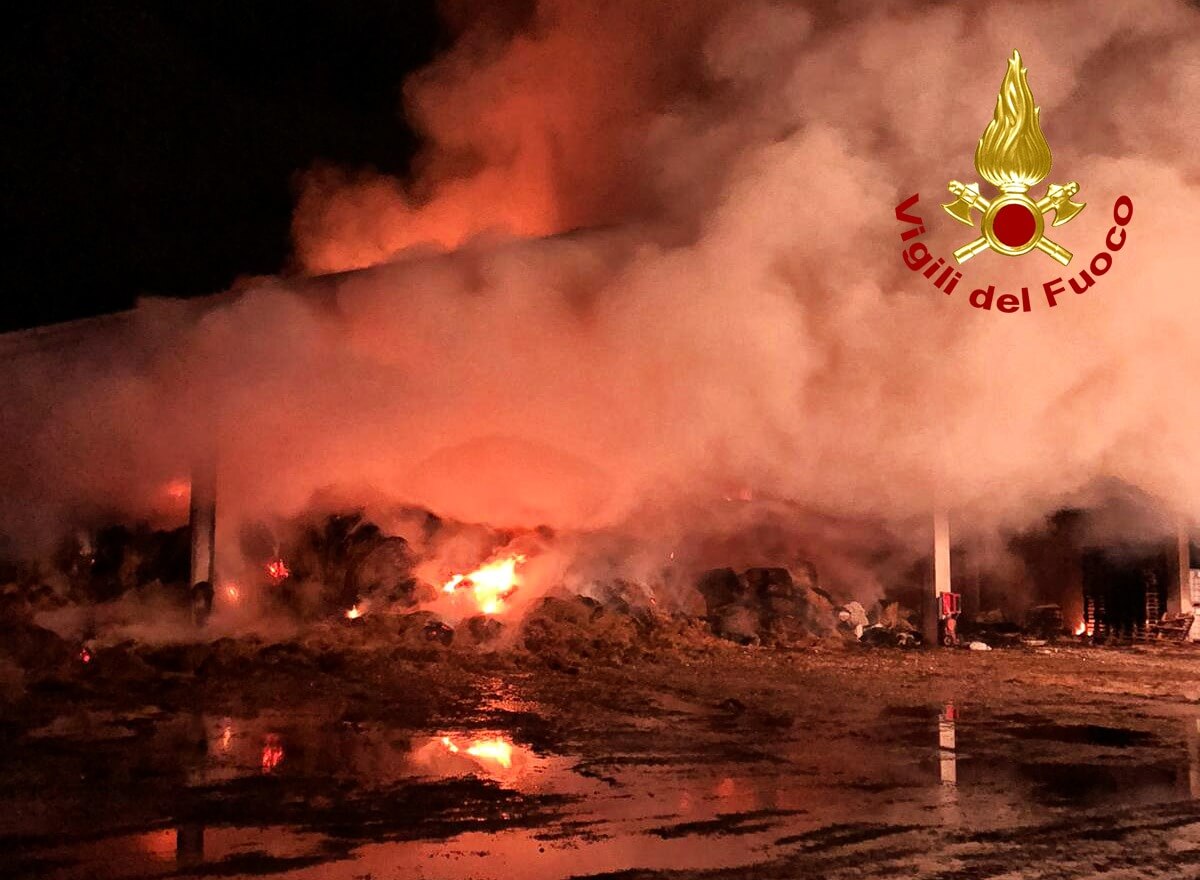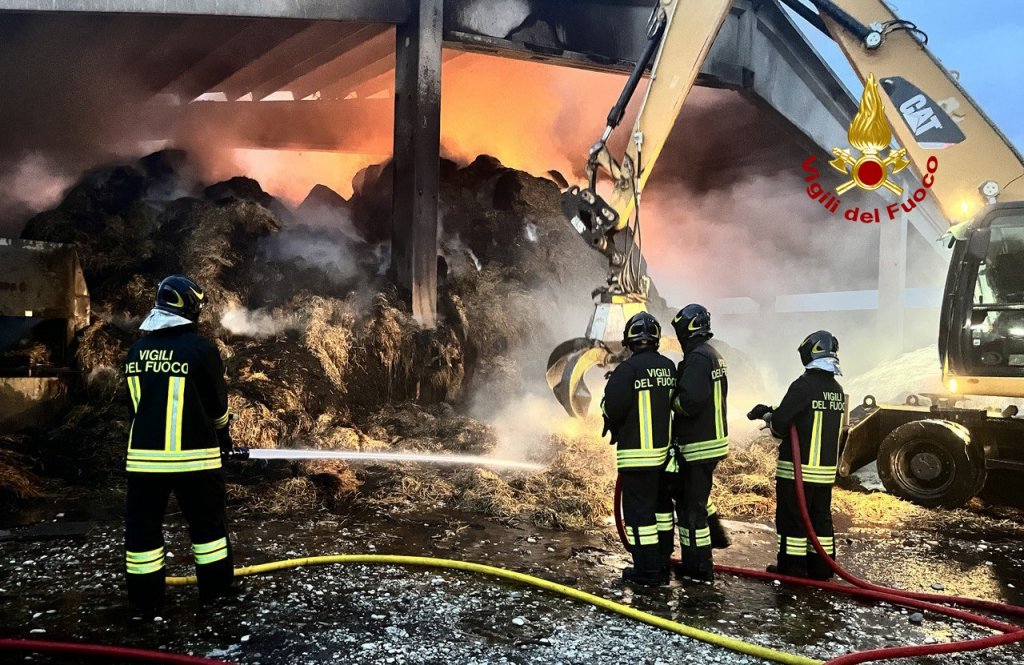POZZOLEONE: PROSEGUONO LE OPERAZIONI DI SPEGNIMENTO DEL FIENILE
