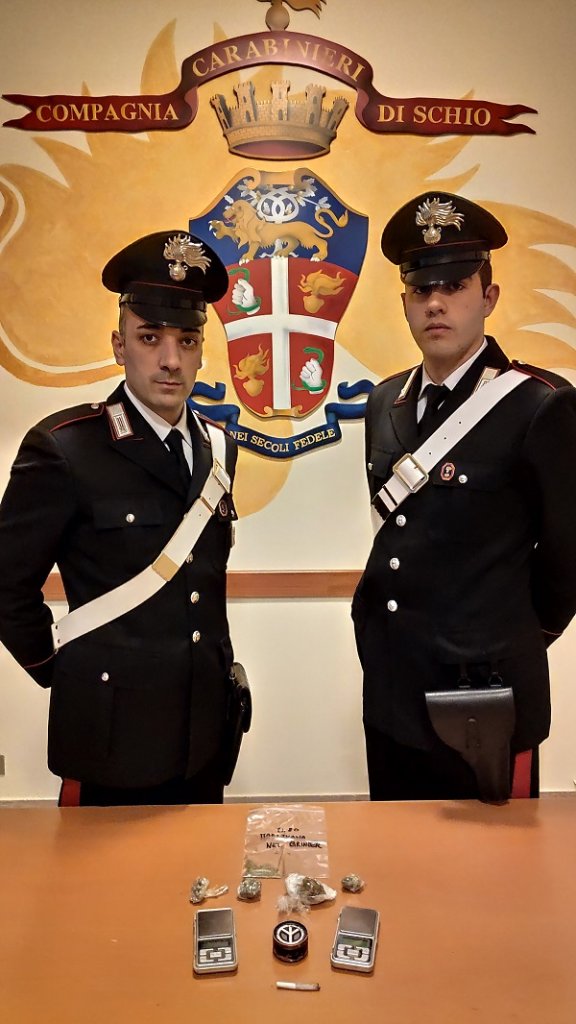 In quel frangente i militari avevano sospettato che la sostanza fosse stata ceduta da C.P., già noto alle FF.PP. e trovato non molto distante dall’acquirente; le successive indagini sui contatti telefonici tra i due soggetti ha avallato questa tesi investigativa, permettendo alla Stazione di Piovene Rocchette di ottenere un decreto di perquisizione domiciliare nell’abitazione scledense di C.P., a seguito della quale sono stati rinvenuti: