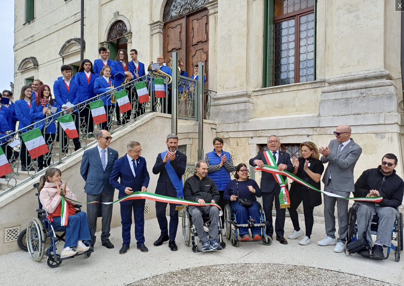 Ad impreziosire il taglio del nastro è stata la Philarmonic Fantasy Band di Noventa Vicentina, che ha suonato l’Inno d’Italia. Presenti, accanto al presidente Nardin, il sindaco di Montecchio Maggiore Silvio Parise, che ha sottolineato la tenacia e la determinazione del presidente Nardin, il presidente Unpli Vicenza Antonio Chemello, la presidente pro loco Alte-Montecchio Ornella Vezzaro. Con loro anche un gruppo di ragazzi in carrozzina che, dopo avere tagliato il nastro, hanno testato la piattaforma elevatrice raggiungendo il salone del Tiepolo per una visita guidata, con la luce negli occhi della prima volta.
