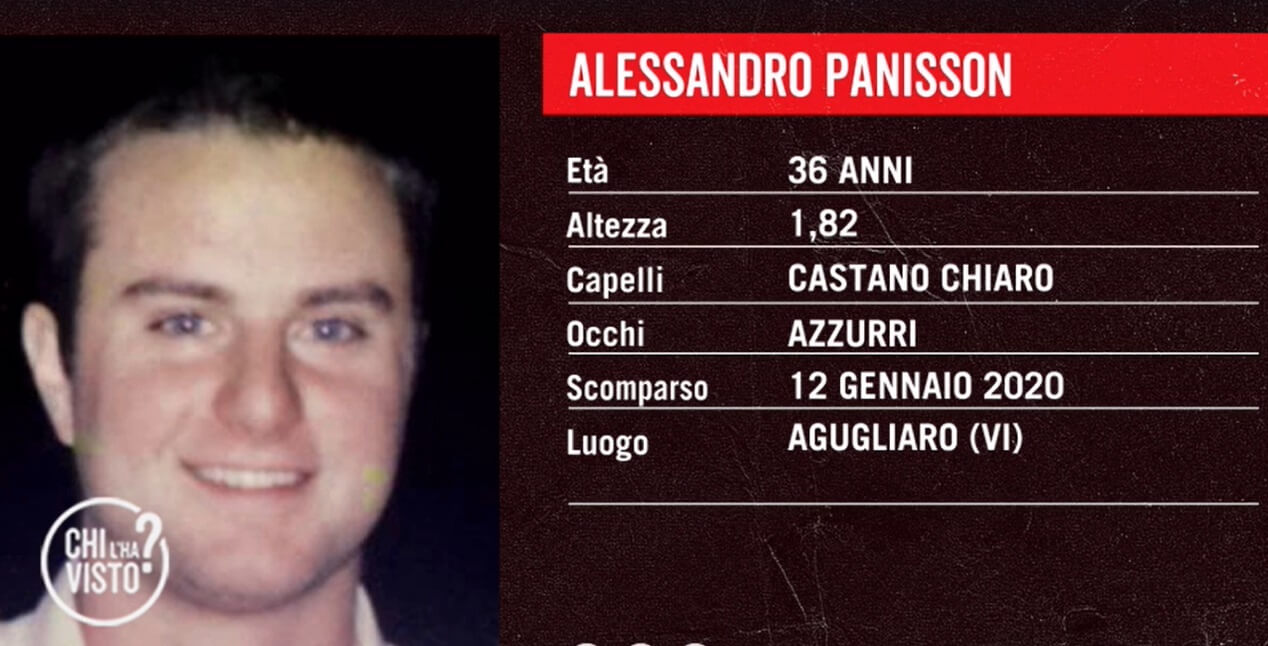 Anche la trasmissione RAI “Chi l’ha visto?” nella puntata di ieri si è occupata della scomparsa di Alessandro Panisson, 36enne di origine veneziana. L’uomo si trovava nella comunità di recupero di Agugliaro (Vicenza). Se n’è allontanato domenica mattina e da allora si è persa ogni traccia. Ad Agugliaro era arrivato la scorsa settimana. A causa del comportamento violento con un altro ospite della comunità era stato invitato ad andarsene. I parenti hanno lanciato un appello durante la trasmissione. Solo tre anni fa Panisson aveva staccato una falange del dito medio ad un agente di polizia penitenziaria.