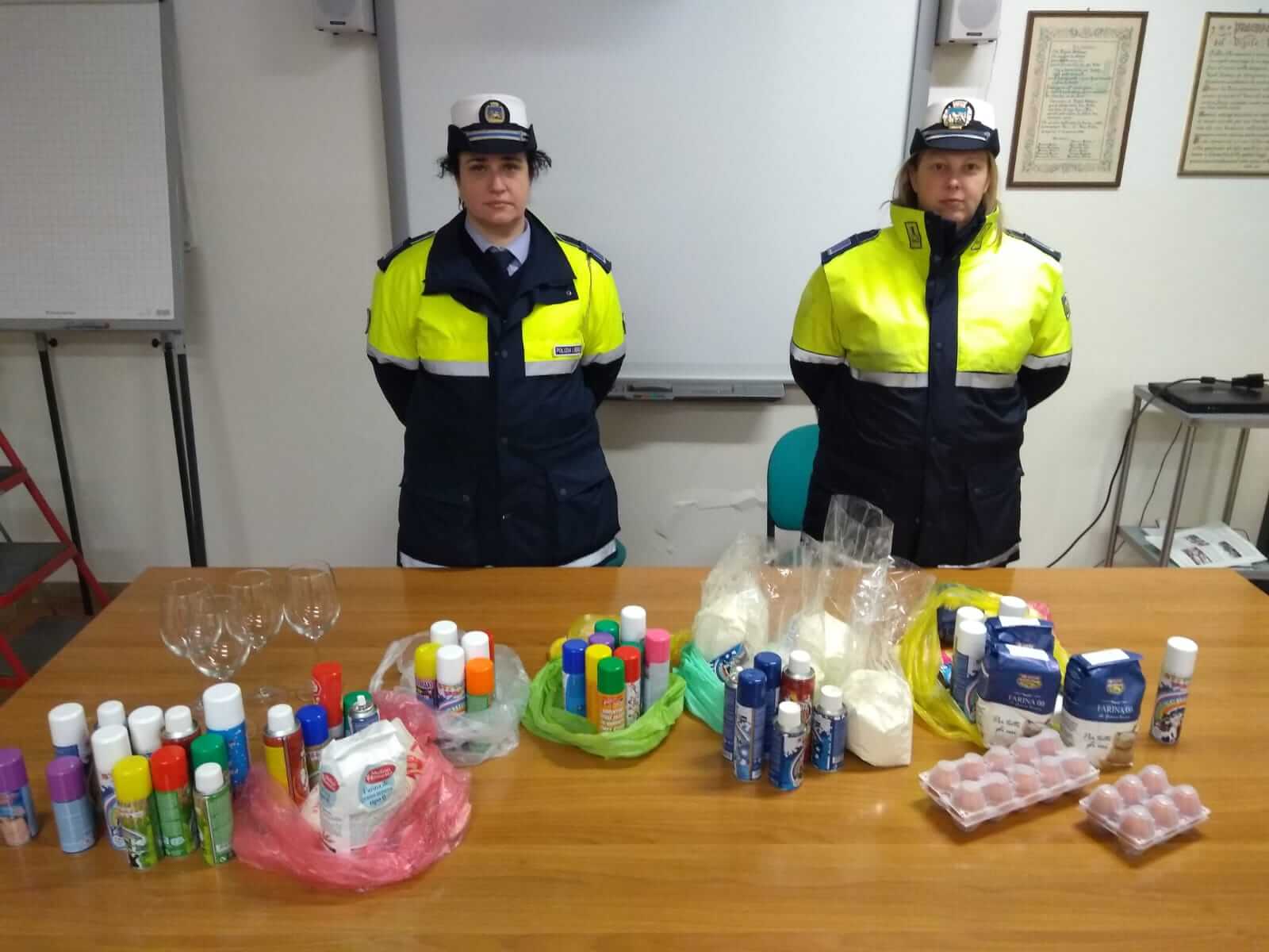 Una festa in sicurezza. 8 agenti di Polizia Locale in servizio di cui 3 in borghese, compreso il comandante Antonio Berto, a garanzia della sicurezza ed evitare il solito caos con schiume uova e farina (vedi foto). Sequestrata a livello preventivo la merce per evitare il caos. Gli agenti in borghese hanno inoltre vigilato su uso alcool delle persone sui carri.