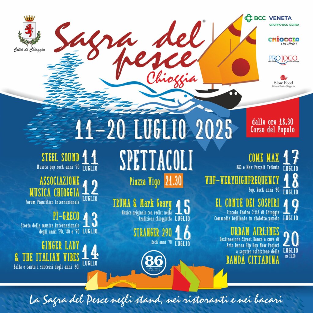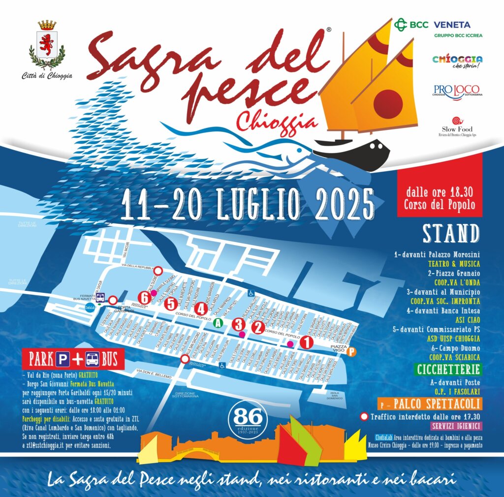 Da venerdì 11 a domenica 20 luglio 2025 Chioggia ospiterà l’86ª edizione della Sagra del Pesce, una delle manifestazioni folkloristico-gastronomiche più attese del Veneto. L’evento si svolgerà ogni sera dalle ore 18:30 lungo Corso del Popolo, nel cuore del centro storico, ed è dedicato ai sapori del mare e della laguna, nonché alla valorizzazione delle tradizioni locali legate alla pesca. (In fondo all’articolo i menu degli stand).