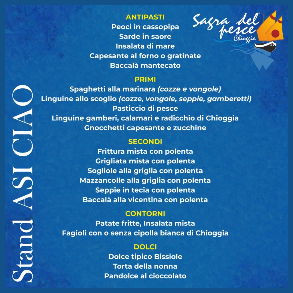 Per dieci serate sarà possibile gustare le ricette tipiche della cucina chioggiotta negli stand gastronomici gestiti dalle associazioni locali. Tra i piatti proposti: