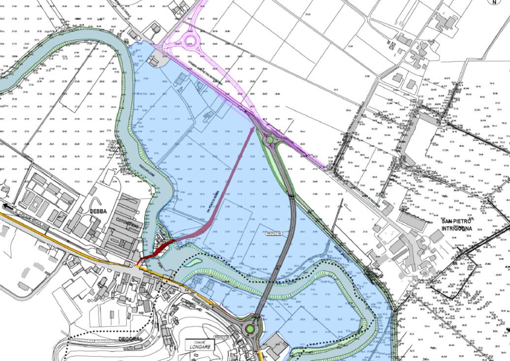 Il nuovo ponte di Debba sarà un viadotto lungo 300 metri che attraverserà tutto l’alveo di piena, in modo da limitare l’impatto idraulico in un’area particolarmente delicata.