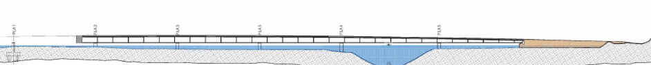 Lo stesso Genio Civile si era espresso in merito, con prescrizioni a tutela delle golene del fiume per garantire il deflusso delle acque in caso di piena. E i progettisti hanno risposto con un viadotto che attraversa non solo l’alveo attivo del fiume, ma tutta l’area golenale, per un totale di 300 metri. Una struttura in acciaio e calcestruzzo con piloni d’appoggio ogni 42 metri, che diventano 55 nella parte centrale di attraversamento del fiume.