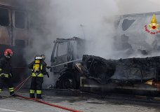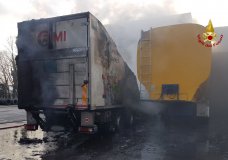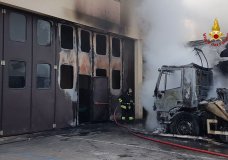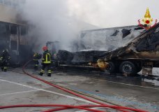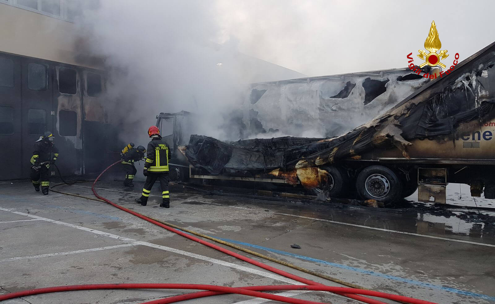 Alle ore 16.10, i vigili del fuoco sono intervenuti in via Colleoni a Molina di Malo per l’incendio di un autoarticolato parcheggiato nel cortile dell’azienda di trasporti Romagna. Le squadre intervenute da Schio e Vicenza con quattro mezzi e dodici operatori, hanno subito circoscritto le fiamme evitando la propagazione del rogo al capannone, di cui e stato danneggiato uno dei portoni e un rimorchio in vetro resina. Danni da fumo all’esterno della facciata del capannone e all’interno per le esalazioni penetrate dentro la struttura dopo la rottura di alcuni vetri per il calore. Le cause dell’incendio sono al vaglio delle squadre intervenute e dei carabinieri. Le operazioni di completo spegnimento e aereazione del locale sono terminate dopo circa un’ora e mezzo con il ripristino delle condizioni di sicurezza del luogo. A lanciare l’allarme un residente che ha sentito un forte boato. Dal luogo dell’incendio si è alzata una colonna di fumo visibile da chilometri di distanza. I danni ammonterebbero a circa 100 mila euro. Secondo una prima ricostruzione sarebbe da escludere l’ipotesi di incendio doloso. Sul posto i carabinieri di Schio.