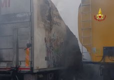 A fuoco autoarticolato, colonna di fumo visibile a chilometri di distanza