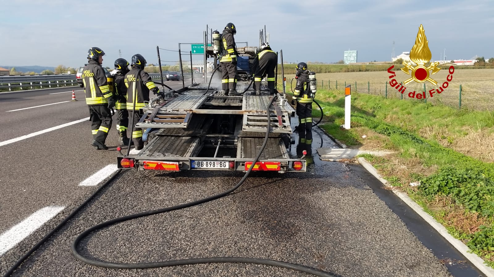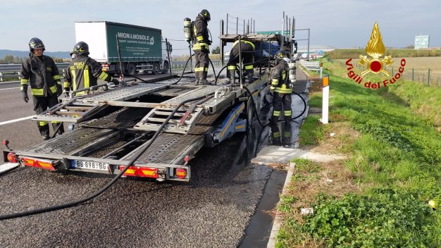 Poco dopo le 10:00, i vigili del fuoco sono intervenuti in autostrada A4 tra i caselli di Grisignano e Vicenza est in direzione Milano per il principio l’incendio di una ruota di una bisarca. Il camion che viaggiava vuoto ha accostato lungo la corsia d’emergenza dopo la segnalazione degli automobilisti, che hanno visto fumo provenire dallo pneumatico. I pompieri arrivati da Vicenza hanno spento e raffreddato la ruota, ripristinando le condizioni di sicurezza dell’autostrada invasa dal fumo. Sul posto il personale ausiliare dell’autostrada e la polstrada. Le operazioni di soccorso dei vigili del fuoco sono terminate dopo circa un’ora e mezza.