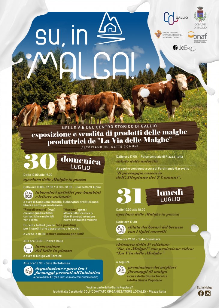 Domenica 30 e Lunedì 31 Luglio, a Gallio, prenderà il via la 1^ edizione di SU, IN MALGA!, un evento che ospiterà diversi malghesi Altopianesi produttori di formaggio di malga.