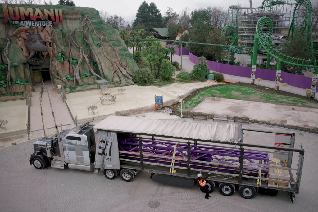L’operazione logistica che ha permesso di completare l’opera in cantiere prima dell’apertura del Parco è stata possibile grazie anche alla collaborazione tra Gardaland e Mesaroli Group, un team di esperti trasportatori, che hanno lavorato insieme, studiando ogni singolo dettaglio, per spostare questa imponente torre dal luogo di costruzione – in provincia di Padova – fino al cuore del Parco, per circa 80 km.