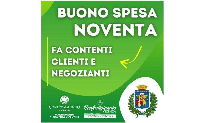 - Da un carnet di buoni spesa, del valore di € 10 cad., con validità fino al 30 aprile 2022, da offrire ai propri clienti che siano residenti nel Comune di Noventa Vicentina :