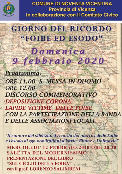 Domenica 9 febbraio e mercoledì 12 a Noventa Vicentina la Giornata del Ricordo, in collaborazione con il Comitato Civico locale.