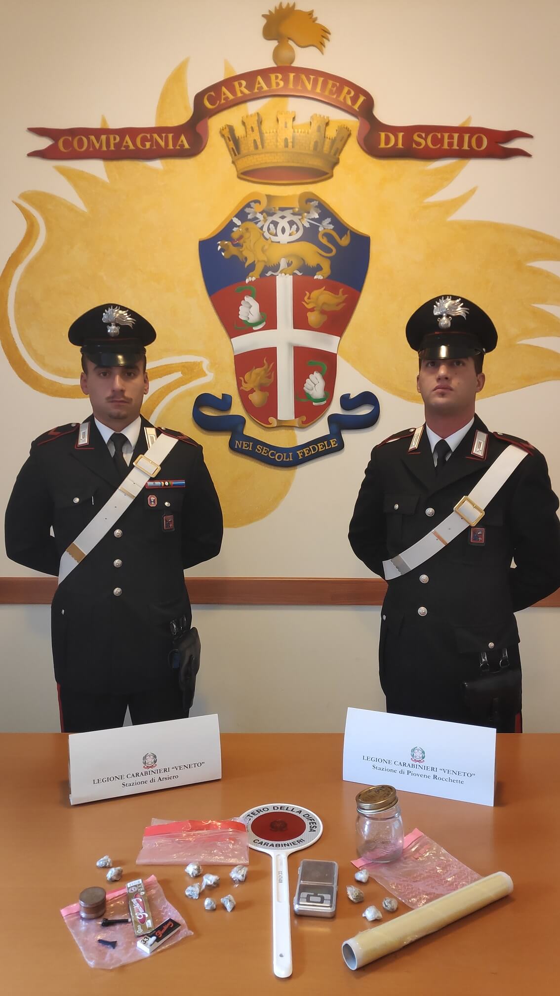 Nella serata del 17 ottobre due pattuglie di militari delle Stazioni di Arsiero e Piovene Rocchette, durante un servizio di controllo del territorio, hanno denunciato D.M.A., cittadino di Santorso 19enne, operaio incensurato.