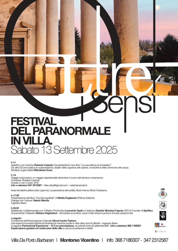 Sabato 13 settembre, in Villa Da Porto a Montorso Vicentino, torna il Festival del Paranormale, organizzato dall’Amministrazione comunale e dalla Pro Loco in collaborazione con Ghost Hunter Padova, ilturismokappa e Cantine Vitevis.