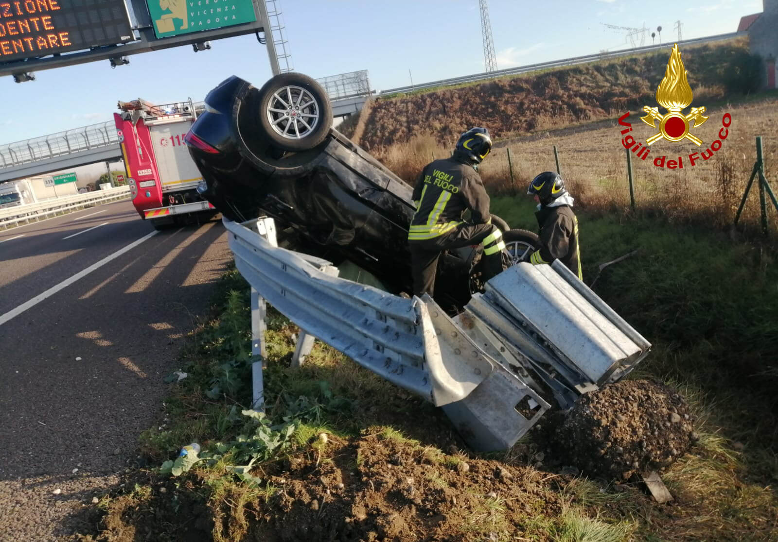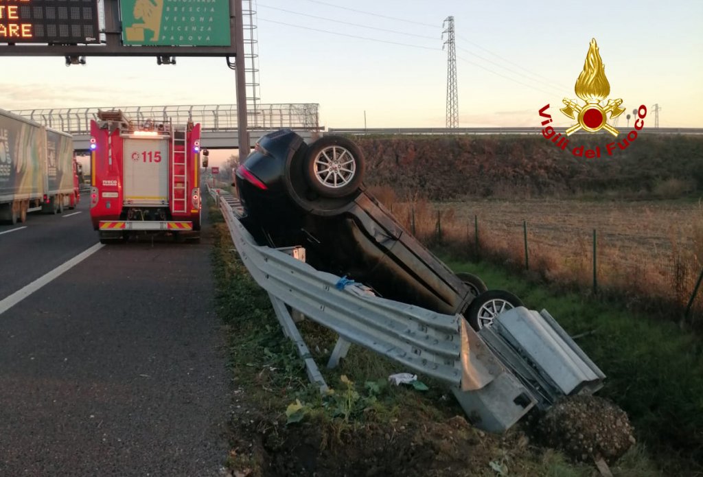 Alla 14:40, i vigili del fuoco sono intervenuti in autostrada A4 tra Vicenza Est e Grisignano per un’auto finita fuoristrada in posizione verticale contro il guardrail, dopo la perdita di controllo del conducente rimasto ferito. I pompieri arrivati da Vicenza hanno messo in sicurezza l’auto, mentre il conducente venuto fuori autonomamente è stato preso in cura dal personale sanitario del SUEM. Sul posto il personale ausiliario di autostrada e la polstrada. Le operazioni di soccorso sono terminate dopo circa un’ora.