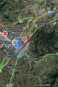 NOTIZIA IN AGGIORNAMENTO – Ennesimo incidente e traffico nel caos sull’A4 tra le gallerie beriche tra i caselli di Vicenza Ovest e Vicenza Est in direzione Venezia. Sono segnalati già alcuni km di coda. Pesanti ripercussioni anche sulla viabilità secondaria (Montecchio Maggiore, Alte Ceccato, strada del Melaro)