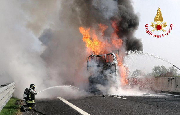 Pauroso schianto stamattina tra Tir in A4 tra i caselli di Portogruaro e di San Stino di Livenza, con un mezzo pesante che ha preso fuoco e ha scatenato caos. L’allarme è arrivato verso le 11.30 al 115 per uno schianto tra tre mezzi pesanti. Nel botto uno dei Tir ha preso fuoco. Immediato l’invio dei soccorsi, arrivati con i Vigili del fuoco di Portogruaro e di Motta di Livenza.