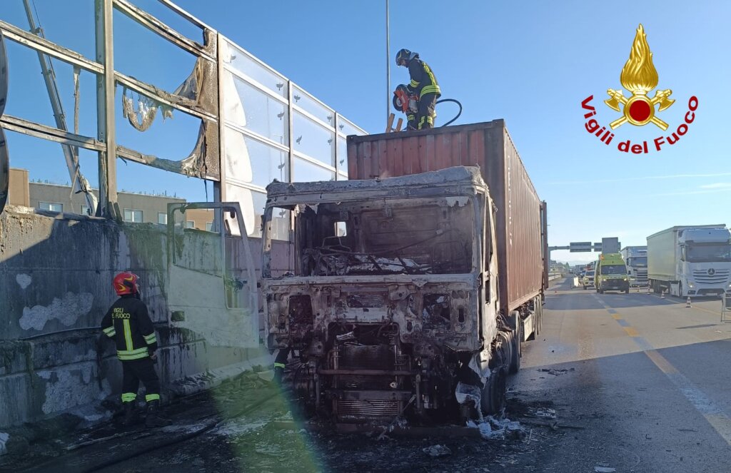 L’autista del mezzo pesante cassonato di metallo, che trasportava mobili imballati da montare, ha notato del fumo, ha accostato ed è sceso, mentre il mezzo ha preso fuoco.