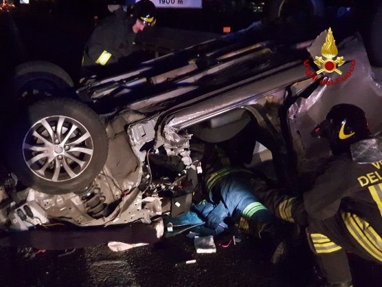Alle 6, i vigili del fuoco sono intervenuti in autostrada A4, poco prima dell’uscita del casello di Vicenza Ovest in direzione Venezia per un incidente tra un camion e un’auto, che si è rovesciata: due feriti. Da una prima ricostruzione sembrerebbe, che l’auto abbia toccato posteriormente il camion e poi si sia capovolta. I pompieri accorsi da Arzignano, hanno messo in sicurezza l’auto cappottata, mentre la coppia all’interno della Toyota Yaris, venuta fuori autonomamente, è stata presa in cura dal personale del Suem 118 per essere portata in ospedale. Sul posto il personale ausiliario dell’autostrada e la Polstrada per i rilievi e la ricostruzione della dinamica del sinistro. Le operazioni di soccorso dei vigili del fuoco sono terminate dopo circa un’ora e mezza.