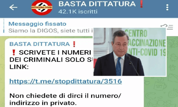 All’operazione, condotta dai magistrati torinesi specializzati in terrorismo, i leader di Basta Dittatura hanno risposto aizzando gli iscritti al canale a compiere un attentato alla procura. Quindi, nella mattinata di ieri lunedì 15 novembre anche a Padova la polizia ha effettuato la perquisizione a casa di Sartori, nell’ambito delle indagini partite da Torino. Di qui l’inevitabile operazione della Polizia contro il gruppo Telegram “Basta dittatura“: per 17 dei partecipanti sono stati contestati i reati di istigazione a delinquere (con l’aggravante di utilizzo di strumenti informatici) e istigazione a disobbedire alle leggi.