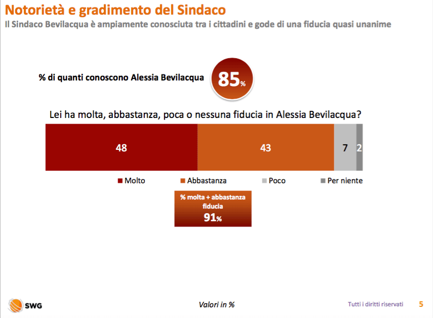 “Ringrazio i cittadini per questa fiducia” -dichiara il sindaco Alessia Bevilacqua. “Mi fa piacere il risultato del sondaggio ma voglio sottolineare il merito che deve andare alla squadra che mi affianca. Continueremo con il massimo impegno nella nostra opera. Come ho avuto già modo di dire, abbiamo grandi obiettivi per la città, in particolare la realizzazione del progetto della Bretella Arzignano-Chiampo, ma presteremo la massima attenzione ai problemi quotidiani dei cittadini, come abbiamo sempre cercato di fare”