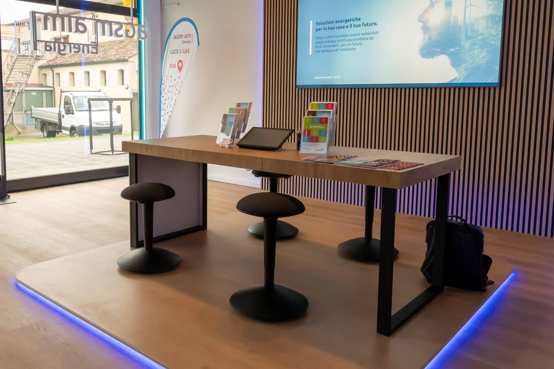Il nuovo sportello, caratterizzato da un design moderno e accogliente, è stato progettato per riflettere l’immagine istituzionale di AGSM AIM e offrire ai clienti un ambiente funzionale e confortevole. Con l’obiettivo di garantire un servizio di prossimità efficiente e dedicato, lo sportello è rivolto a cittadini, attività economiche e associazioni del territorio.