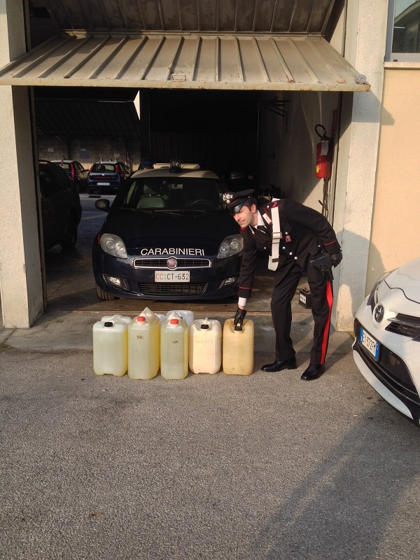 I militari, da un prima verifica visiva, hanno notato immediatamente che le scarpe di entrambi erano sporche di terra fresca. Venivano quindi sottoposti a perquisizione personale e veicolare e, nel bagagliaio posteriore, venivano trovati in possesso di quattro taniche in plastica piene di carburante, per un totale di oltre 120 litri di gasolio, e di due taniche in plastica da 20 litri vuote, per le quali non riuscivano a fornire una plausibile giustificazione sulla provenienza. Pertanto entrambi sono stati denunciati per “omesso pagamento delle accise sul carburante” ed il combustibile veniva sottoposto a sequestro.