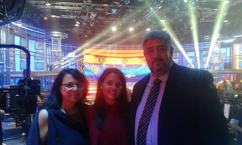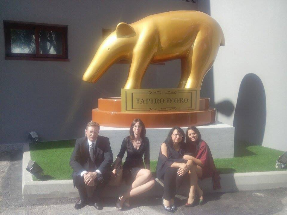 C’era anche un po’ di Vicenza alla presentazione. Presente Giada Bagolan della Eventi e Spettacolo 2A s.r.l. di Vicenza, che vanta una lunga storia nella produzione di spettacoli televisivi e che svolge una ricca attività di organizzazione di eventi. La società vicentina è stata chiamata a partecipare e vi sono voci secondo le quali potrebbe collaborare con Mediaset in alcune produzioni. Il condizionale è d’obbligo, ma la presenza alla presentazione non può considerarsi casuale. Nelle foto della presentazione anche Giada Bagolan direttore artistico e proprietaria di Eventi e Spettacolo (sopra a destra con la madre sotto il monumentale Tapiro d’oro e qui sotto con il padre e la madre. A seguire altre foto della presentazione).