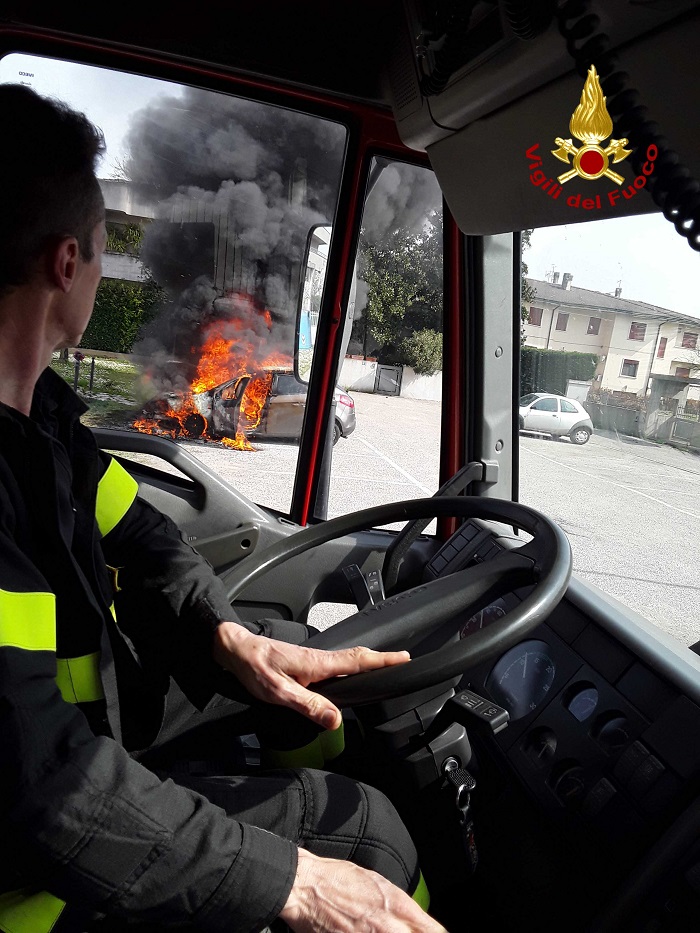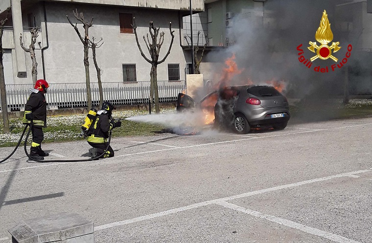 Poco prima delle 13.30, i vigili del fuoco sono intervenuti per un incendio auto in piazza Umberto I ad Albettone. La donna alla guida di una Fiat Bravo mentre si apprestava a parcheggiare, è stata avvertita da un altro automobilista delle fiamme, divampate sotto il motore. Completamente avvolta dalle fiamme l’auto all’arrivo dei pompieri di Lonigo che hanno spento il rogo.. Le operazioni di spegnimento e messa in sicurezza del luogo sono durate circa un’ora.