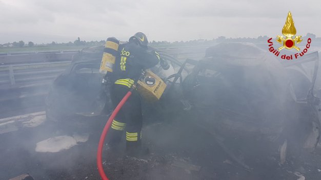 Aggiornamento. Due delle vittime carbonizzate sono di Noventa Vicentina. Si tratta di una ragazza di 17 anni, A.R. studentessa del Liceo di Noventa, che si trovava con il padre (L.R.) che la stava accompagnando a Vicenza. Ancora sconosciuta l’identità delle altre due vittime, una delle quali potrebbe essere di nazionalità marocchina.