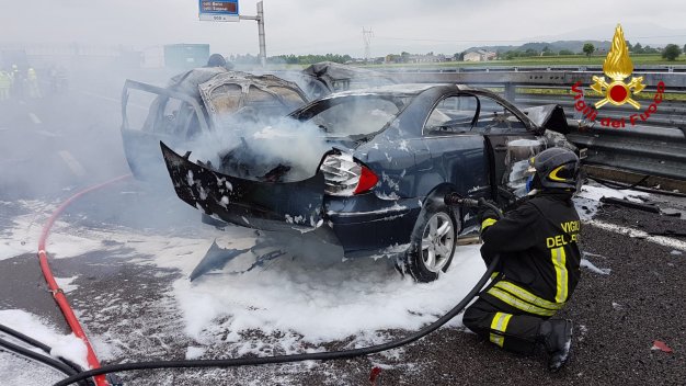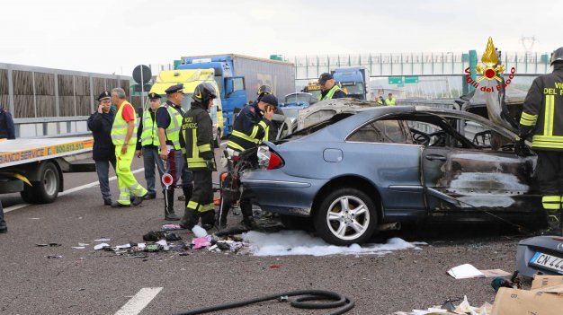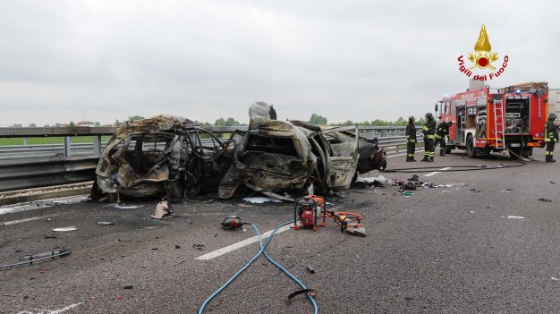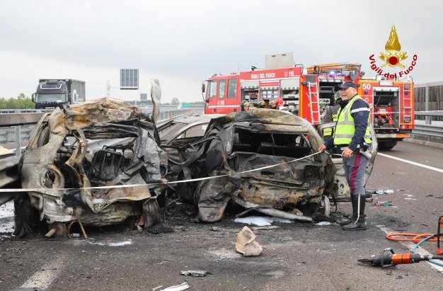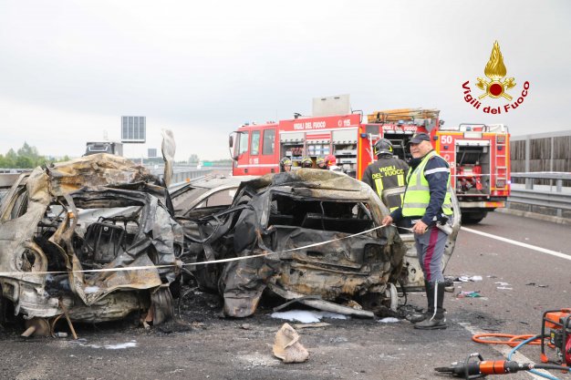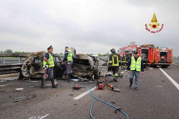 Aggiornamento. Due delle vittime carbonizzate sono di Noventa Vicentina. Si tratta di una ragazza di 17 anni, A.R. studentessa del Liceo di Noventa, che si trovava con il padre (L.R.) che la stava accompagnando a Vicenza. Ancora sconosciuta l’identità delle altre due vittime, una delle quali potrebbe essere di nazionalità marocchina.