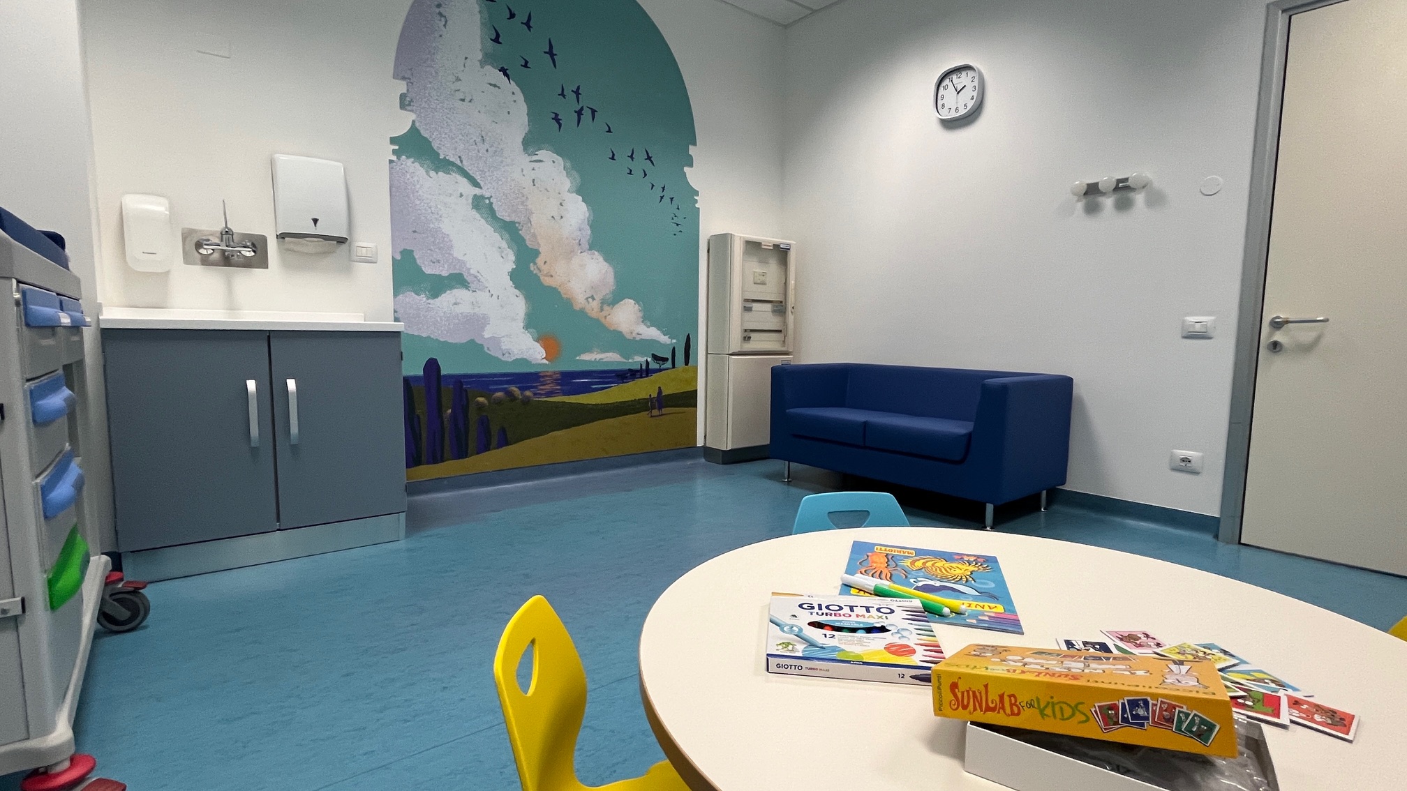 La stanza è inoltre pensata per essere anche a misura di bambino, con un tavolino, seggioline, alcuni libri e giocattoli e un fasciatoio, perché non è raro che la donna vittima di violenza che si rivolge al Pronto Soccorso abbia con sé anche i figli e in questi casi il primo obiettivo è tenerli uniti, facendo sentire accolto e protetto anche il minore.