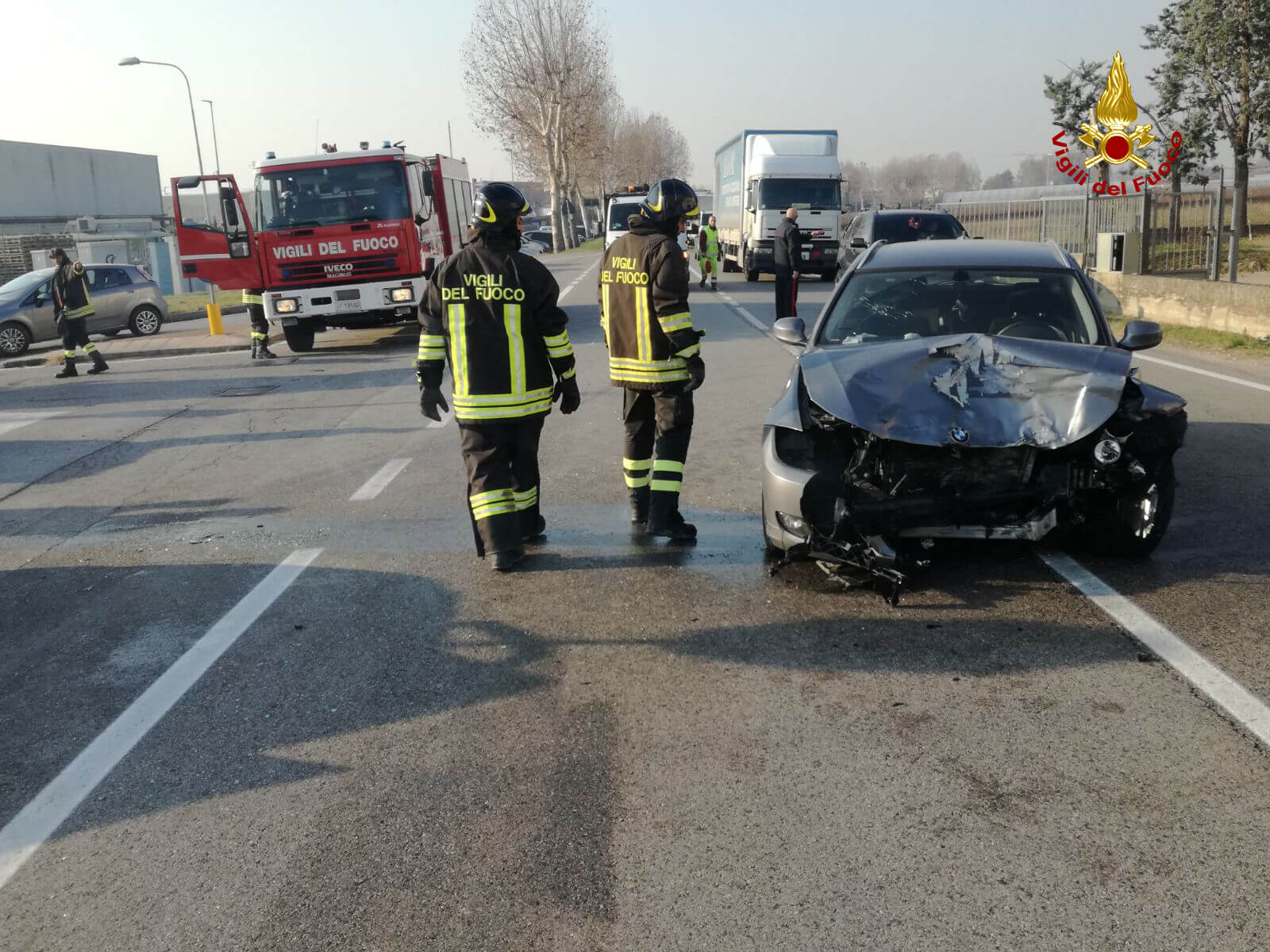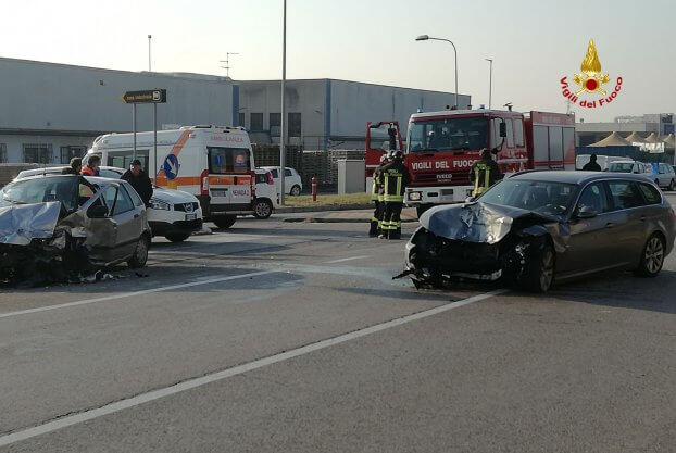 Poco prima delle ore 13.30, i vigili del fuoco sono intervenuti in via Delle Albere ad Alonte per un incidente stradale che ha coinvolto tre autovetture: due i feriti. I pompieri accorsi da Lonigo hanno messo in sicurezza i mezzi ed estratto un uomo rimasto incastrato all’interno di una Fiat Punto che si è prima scontrato contro una Bmw e successivamente contro una Nissan Qashqai. Il ferito dell’utilitaria e della berlina tedesca sono stati presi in cura dal personale del Suem 118 per essere portati in ospedale. Illeso il conducente dell’auto giapponese. I carabinieri hanno eseguito i rilievi dell’incidente per ricostruire la dinamica del sinistro. Le operazioni di soccorso dei vigili del fuoco sono terminate dopo circa due ore.