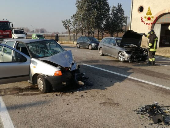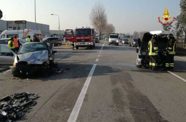 Poco prima delle ore 13.30, i vigili del fuoco sono intervenuti in via Delle Albere ad Alonte per un incidente stradale che ha coinvolto tre autovetture: due i feriti. I pompieri accorsi da Lonigo hanno messo in sicurezza i mezzi ed estratto un uomo rimasto incastrato all’interno di una Fiat Punto che si è prima scontrato contro una Bmw e successivamente contro una Nissan Qashqai. Il ferito dell’utilitaria e della berlina tedesca sono stati presi in cura dal personale del Suem 118 per essere portati in ospedale. Illeso il conducente dell’auto giapponese. I carabinieri hanno eseguito i rilievi dell’incidente per ricostruire la dinamica del sinistro. Le operazioni di soccorso dei vigili del fuoco sono terminate dopo circa due ore.