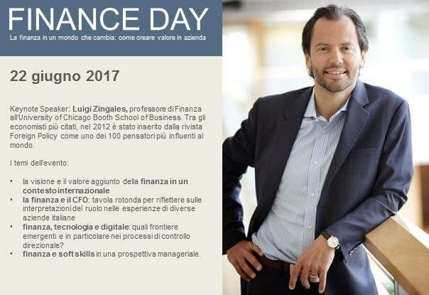 Durante il Finance Day saranno affrontati, in particolare, quattro macro temi. Il primo riguarda la visione e il valore aggiunto della finanza in un contesto internazionale. Operativamente saranno analizzati progetti e soluzioni contrattuali che è possibile mettere in atto nelle aziende a fronte ai cambiamenti di scenario macroeconomico in termini di governo dei rischi industriali, di copertura dei rischi finanziari o di gestione del rischio di filiera. L’analisi sarà a cura del Prof. Luigi Zingales, Key Note Speaker della giornata.