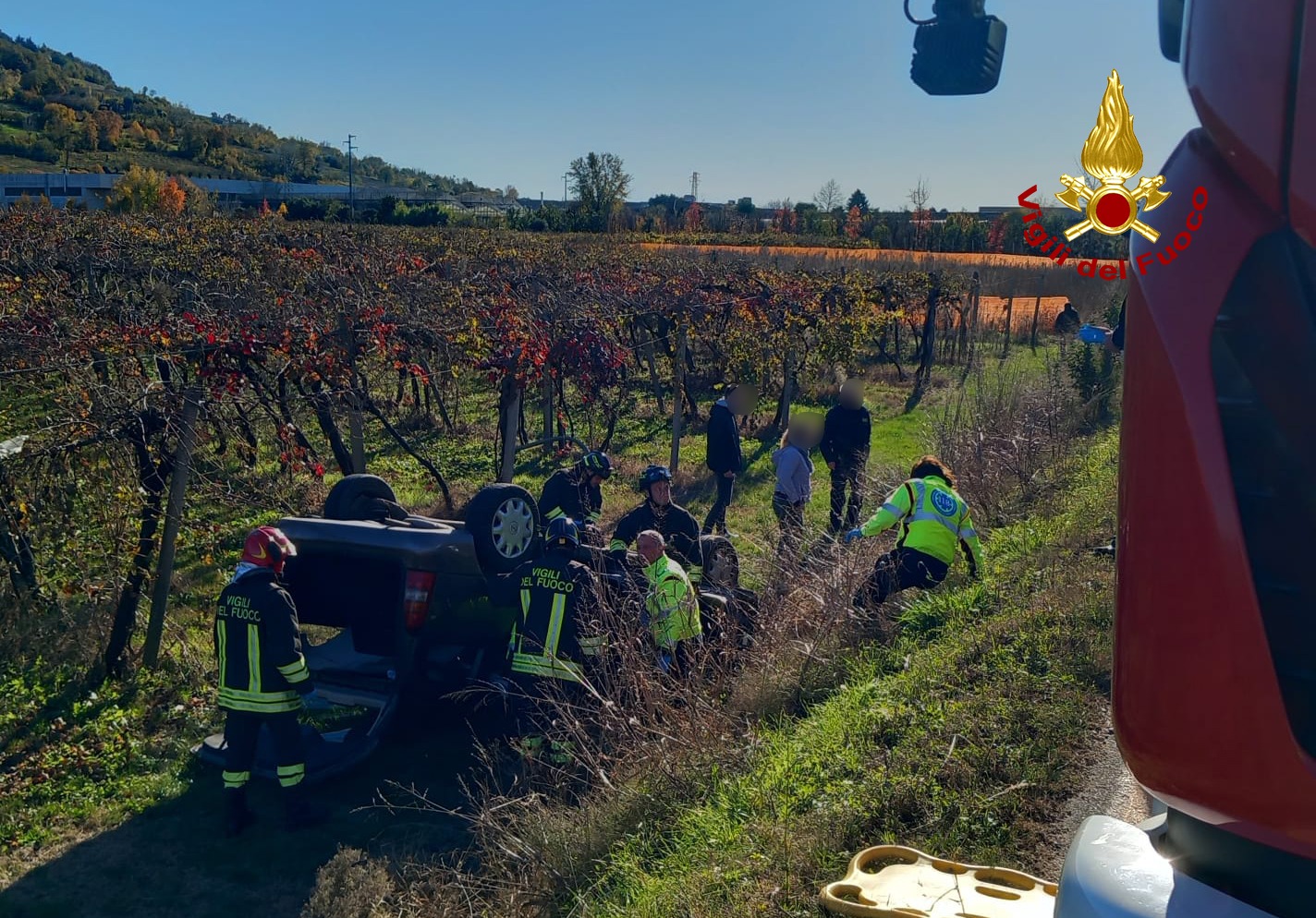 Poco dopo le 13:00 di sabato i vigili del fuoco sono intervenuti lungo la strada Melaro ad Altavilla Vicentina per un’auto finita rovesciata sotto il piano stradale in un campo agricolo dopo la perdita di controllo del conducente, rimasto ferito.