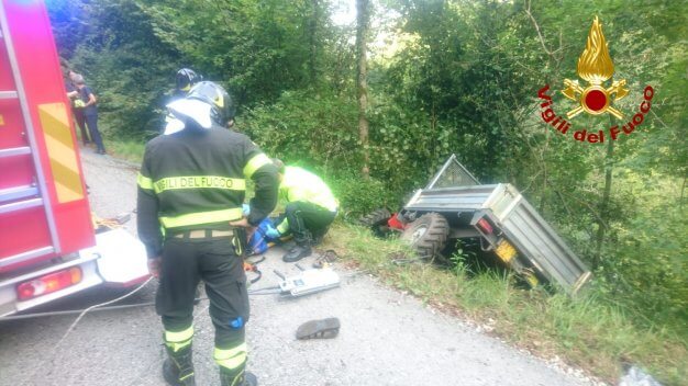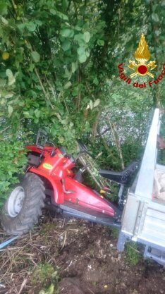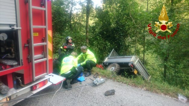 Alle 16.40 di ieri i vigili del fuoco sono intervenuti in via Roma ad Altissimo dopo un tornante della strada che collega Molina a Bolca per un trattorino con rimorchio rovesciatosi fuori strada sul pendio della collina: ferito l’agricoltore. Il settantenne alla guida del veicolo è stato sbalzato fuori ed è rimasto bloccato qualche metro sotto il ciglio stradale tra il veicolo e gli alberi. I pompieri arrivati da Arzignano e da Vicenza con il personale SAF (speleo alpino fluviale) hanno assicurato il veicolo che rischiava di scivolare finendo nella strada sottostante, riuscendo in sicurezza ad estrarre l’uomo, che è stato stabilizzato dal personale del suem 118, intervenuti anche con l’elisoccorso. L’uomo con un codice di media gravità è stato trasferito in ambulanza in ospedale. Recuperato il trattorino e il rimorchio. Le operazioni di soccorso si sono concluse dopo un paio d’ore.