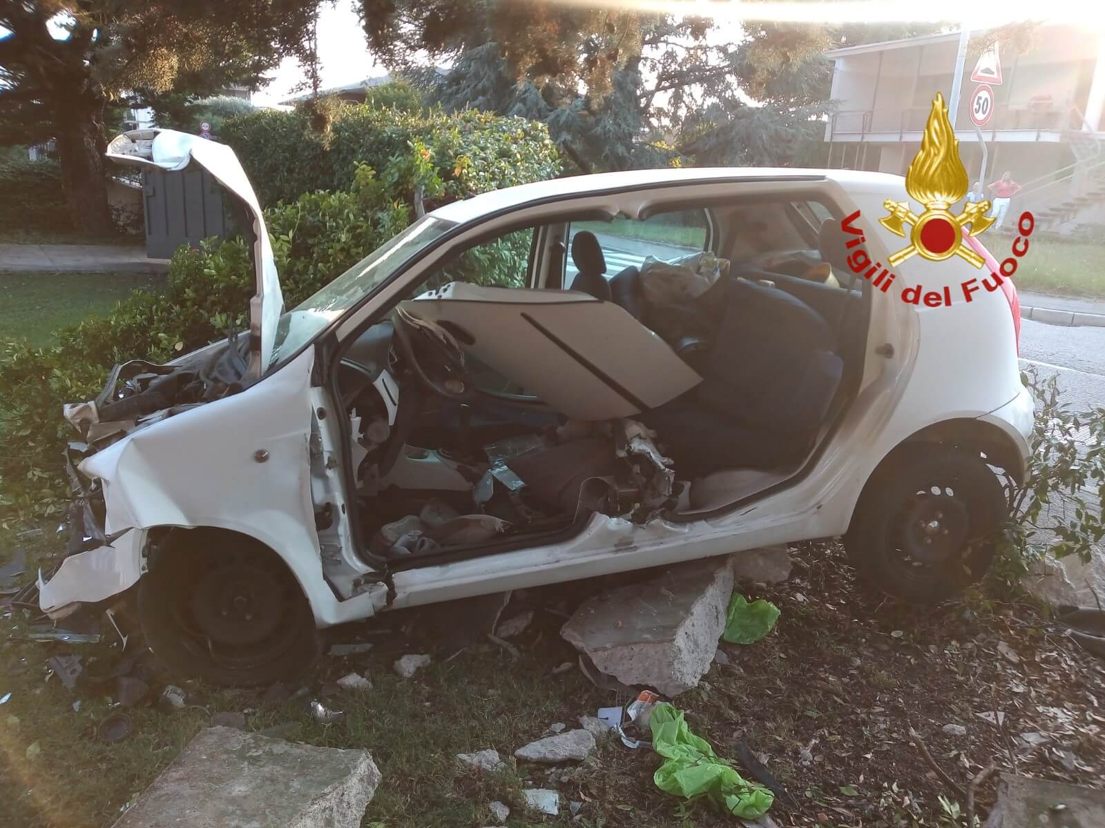 Brutto incidente alle 16:45 di ieri, a Chiuppano. I vigili del fuoco sono intervenuti in via Dante per un’auto finita contro un muretto, dopo la perdita di controllo del mezzo da parte del conducente, rimasto ferito.