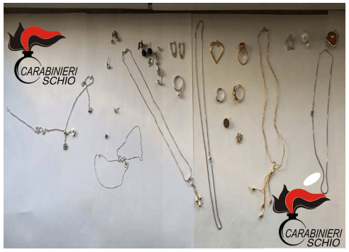 Adeguata ed immediata la reazione dei militari, che nel tentativo di far desistere i fuggitivi dal loro proposito, hanno esploso alcuni colpi in aria. I malviventi hanno però continuato la loro fuga, dileguandosi nella campagna circostante. Rapidissimo è stato il concentramento delle pattuglie della Compagnia Carabinieri di Schio nella zona d’interesse, con il Nucleo Operativo e Radiomobile dedicato agli accertamenti tecnici connessi al sopralluogo e al repertamento degli indizi sul luogo del reato. Mentre diverse pattuglie di Carabinieri, in auto e a piedi, hanno battuto il territorio per rintracciare i fuggiaschi, ma con esito negativo. Una verifica più approfondita sul veicolo ha permesso di evidenziare come fosse stato rubato nell’abitazione di una coppia residente a Rossano Veneto nel gennaio scorso. All’interno del mezzo è stato rinvenuto uno zainetto contenente monili in oro, presumibilmente il frutto di precedenti colpi in abitazione L’auto, infatti, era già emersa in quel territorio la precedente settimana, quando una pattuglia di Carabinieri, appartenente alla stazione di Malo, dopo un furto in casa, l’aveva a lungo inseguita. L’auto è risultata rubata a gennaio a Rossano Veneto